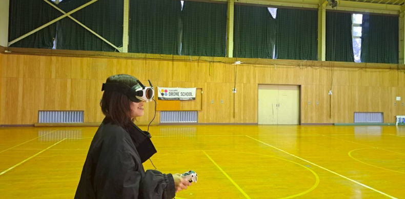 また、ゴーグルを装着して操縦するため、飛行形態としては目視外飛行に該当しますが、障害物センサーが搭載されており、障害物に近づくと音で知らせてくれます。